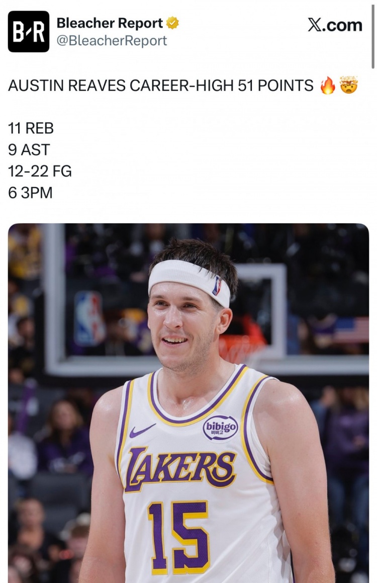 In this campaign, Reeves played 39 minutes, making 12 of 22 shots, 6 of 10 three-pointers, and 21 of 22 free throws, scoring a career-high 51 points, plus 11 rebounds, 9 assists and 2 steals, with a plus-minus value of +22.