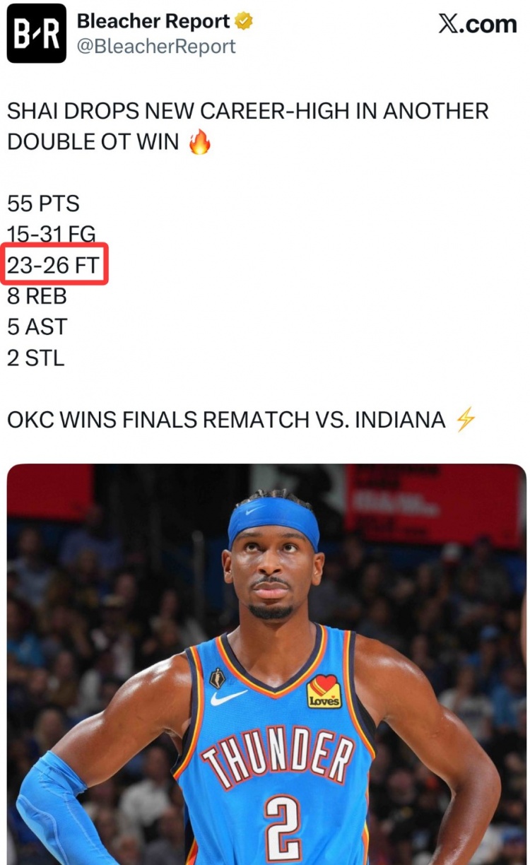 After the game, the US media published Reeves' data in the bleachers but did not include free throws. However, Alexander's previous game data where he scored 55 points against the Pacers did include free throws. Thunder reporter Clemente Almanza wrote: "I found the difference."