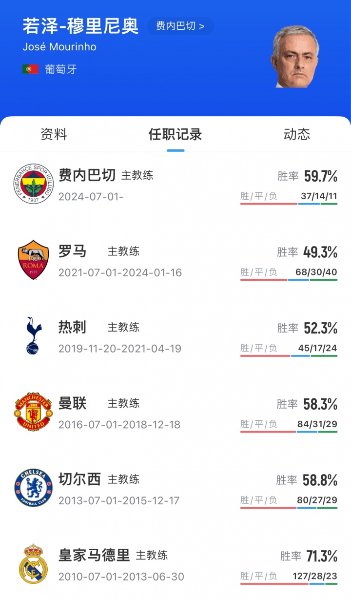 Mourinho became the head coach of Fenerbache in June 2024, with a record of 37 wins, 14 draws and 11 losses.