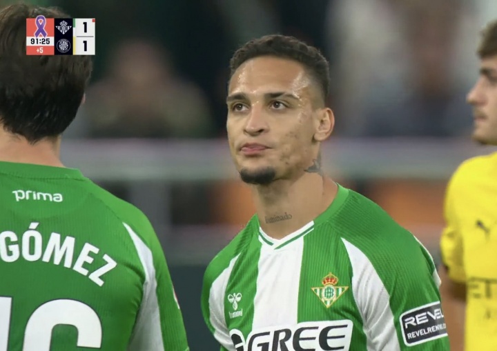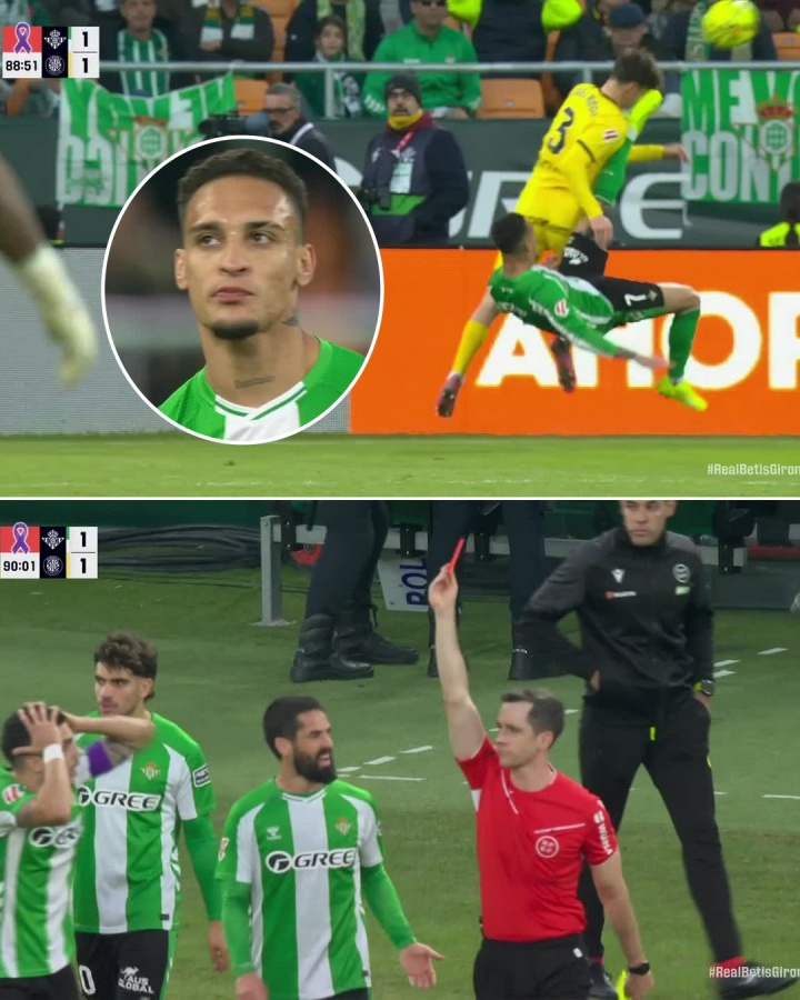 Betis drew 1-1 with Girona in this round. In the 90th minute, Anthony kicked his opponent in the head with an overhead kick. The referee checked VAR and sent him off straight red.