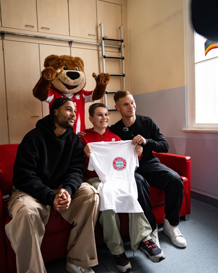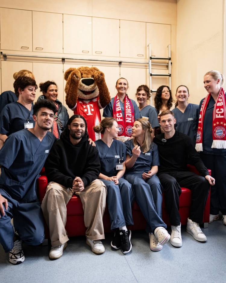 Gnabry, Kimmich and the Bayern mascot visited the oncology ward of the Houner Children's Hospital to visit sick children and bring joy to the children. Bayern posted relevant photos on social media to record this warm day.