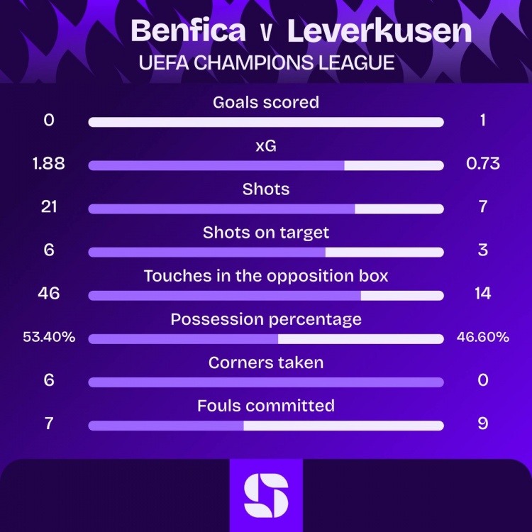 In the fourth round of the UEFA Champions League, Benfica lost 0-1 at home to Leverkusen.