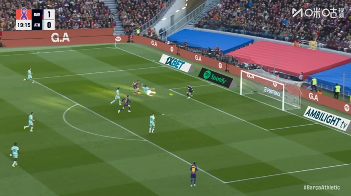 In the 13th round of La Liga, Barcelona faced Bilbao. In the 20th minute, Balde passed the ball, Fermin's single chance shot was saved, and Olmo's supplementary shot missed.