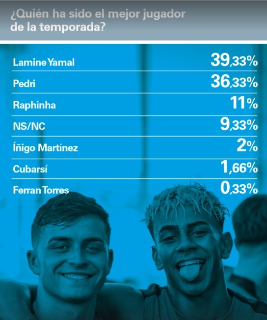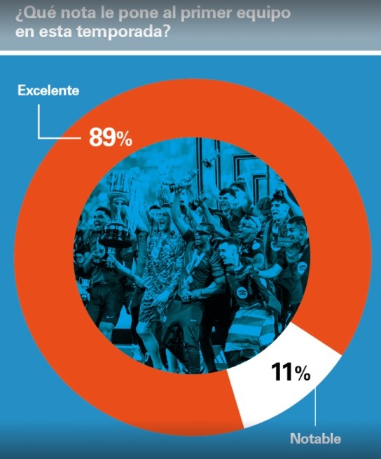 Barcelona won three of four possible championships: La Liga, the King's Cup and the Spanish Super League, which won Barcelona excellent ratings. Eliminated by Inter Milan in the Champions League semi-finals with almost no impact. According to a survey by World Sports, 89% of members believe that the team's work is excellent. A few people, 11%, gave good evaluations.